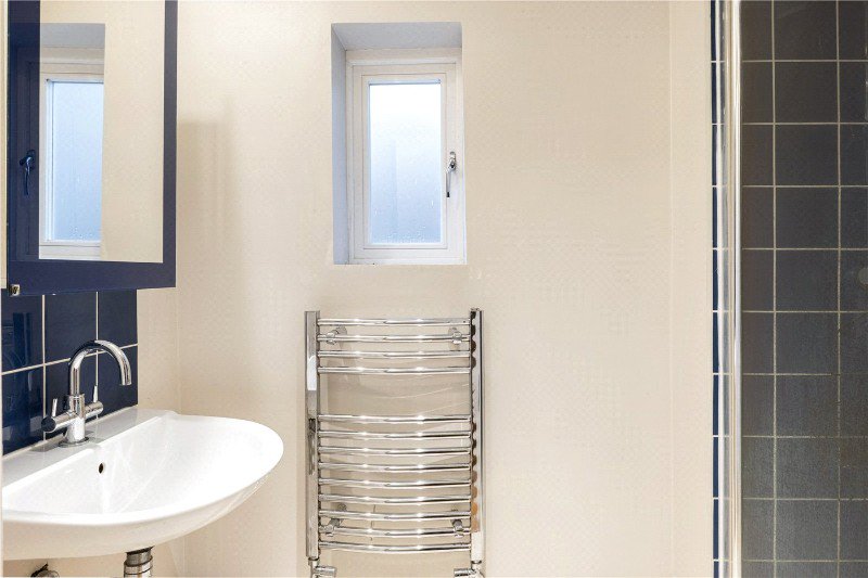A separate fitted kitchen at the rear provides good storage and worktop space with leafy outlooks. The accommodation includes a comfortable principal bedroom and a second, smaller room that would work well as a study, dressing room or single bedroom. The apartment is completed by a contemporary shower room and a separate WC. Finished in good decorative order throughout, the property offers a practical, characterful home in a sought-after part of Clapham — ideal for first-time buyers, couples or investors.