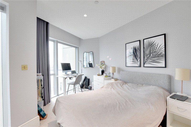 Occupying the 8th floor and spanning approximately 872 sq ft, the apartment features a spacious 21ft reception room with floor-to-ceiling windows and a superb open-plan kitchen, fully fitted with high-quality integrated appliances. Both double bedrooms enjoy direct river views, with the principal bedroom opening onto a covered private balcony – the perfect spot to relax and take in the stunning riverscape. The principal bedroom also benefits from a stylish en-suite bathroom, complemented by a second contemporary bathroom and generous storage throughout.