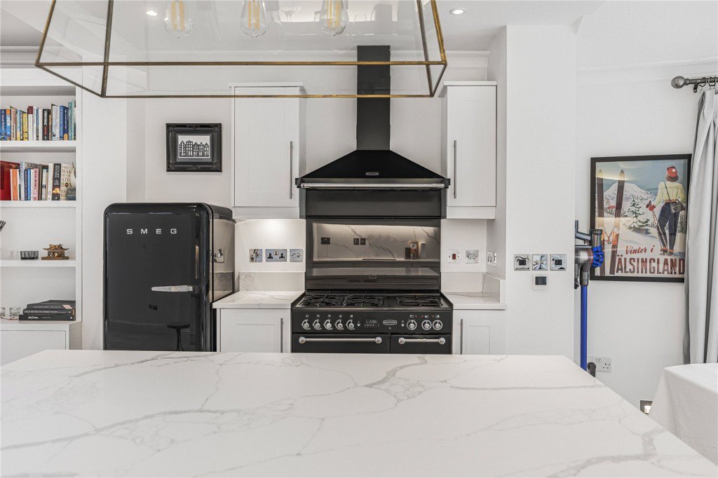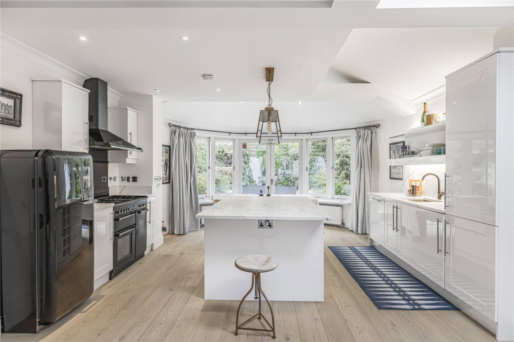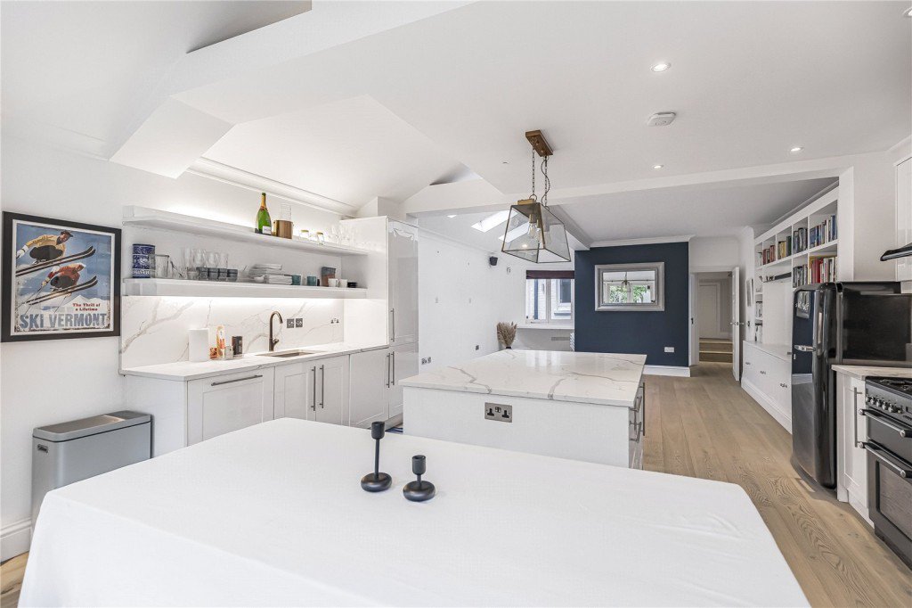 The greatest feature is the large and well renovated open plan reception / kitchen / dining space that leads to the garden through double doors, flooded with light not only through the large doors, but also by several velux windows in the side return.