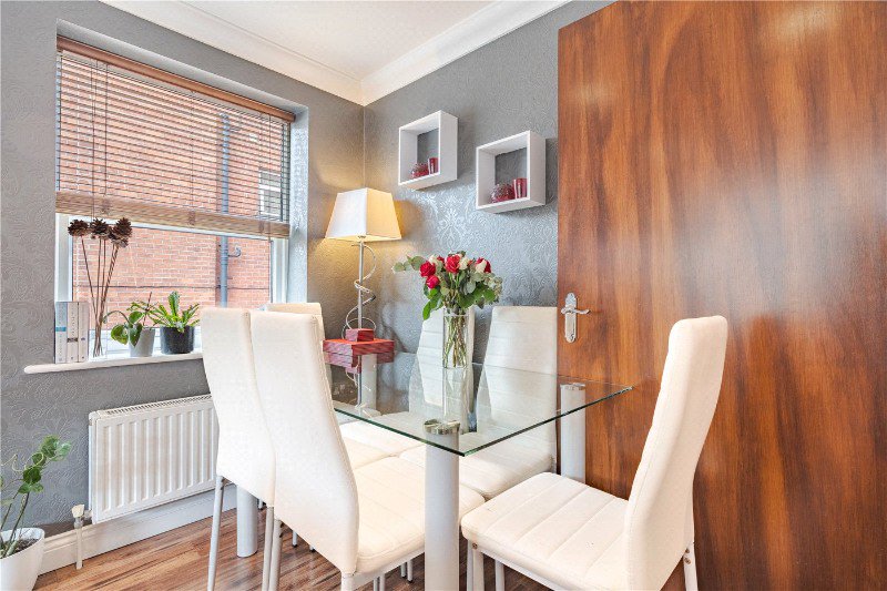 This two bedroom, first floor flat can be accessed via either the stairs or a lift. The spacious lounge / dining room enjoys a bay window, flooding the room with natural light and a door leading out to a private balcony. The kitchen is well equipped with a modern range of cabinets and integrated appliances.