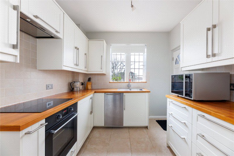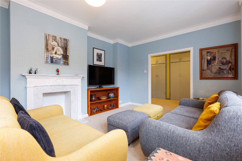 A separate kitchen complements the well-proportioned dining room and reception room, providing distinct areas for everyday living and entertaining. The apartment benefits from an open aspect from every window, allowing for an abundance of natural light and a pleasant outlook throughout.