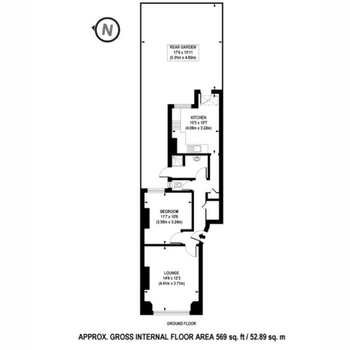 Upon entering, the hallway leads to a spacious reception room at the front of the property, with a large window overlooking the front garden. The double bedroom, located just behind, benefits from a window facing the side return, ensuring a peaceful retreat. At the rear, the kitchen diner opens directly onto the mature, low-maintenance garden, which is private and gated for added security.