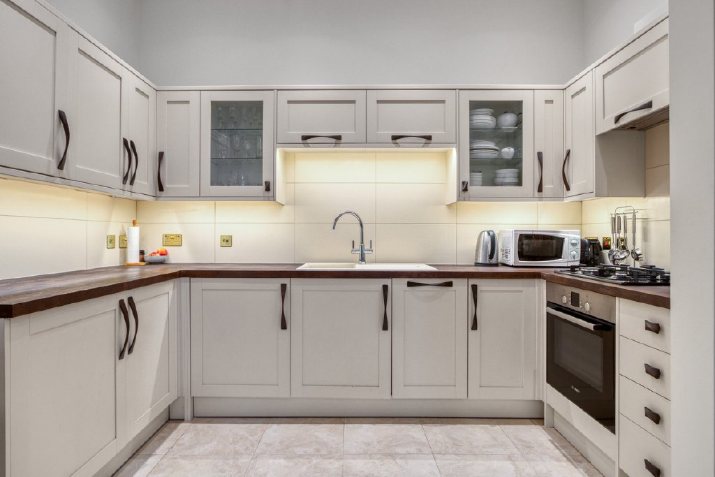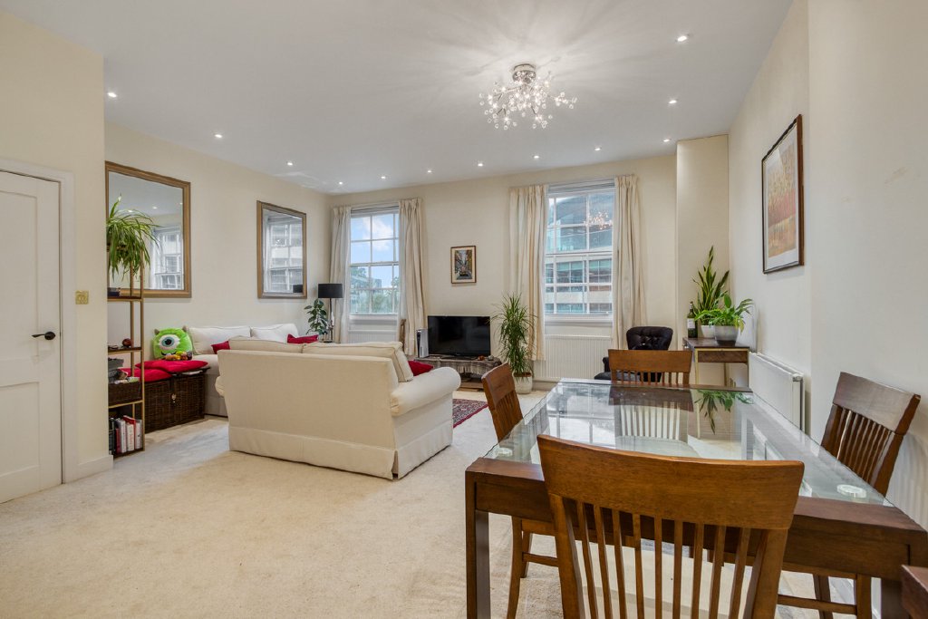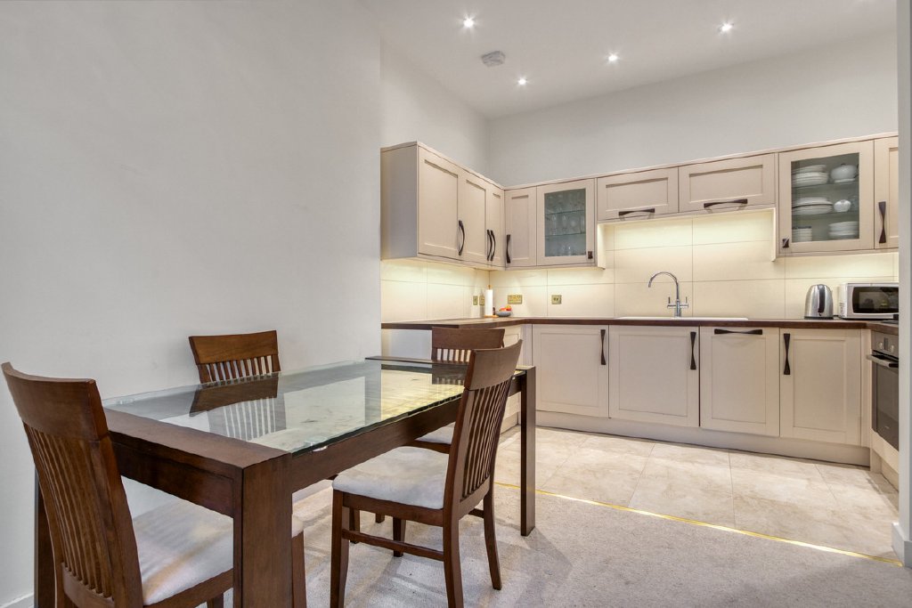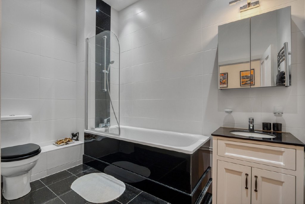 The property benefits from high ceilings and large sash windows, allowing natural light to flow through the spacious open-plan kitchen and living area. The principal bedroom is generously sized, featuring an en suite bathroom, and an additional family bathroom offers further convenience. With ample storage throughout, the apartment’s layout is flexible, offering potential for a second bedroom or home office.