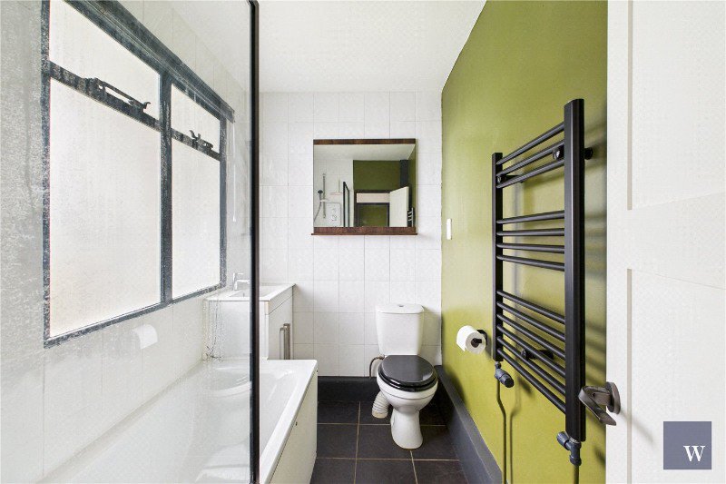 The double bedroom is an excellent size and benefits from a peaceful outlook towards the communal grounds. A sleek modern bathroom completes the accommodation, finished with modern tiling, a bath with an overhead shower, WC and wash basin.