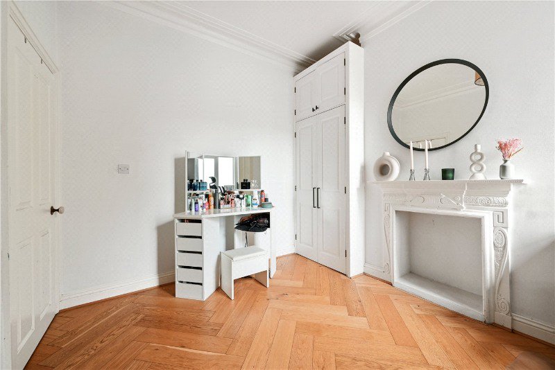 Additionally, there are stunning period tiles in the hallway, with solid wood herringbone floors throughout the remainder of the flat.