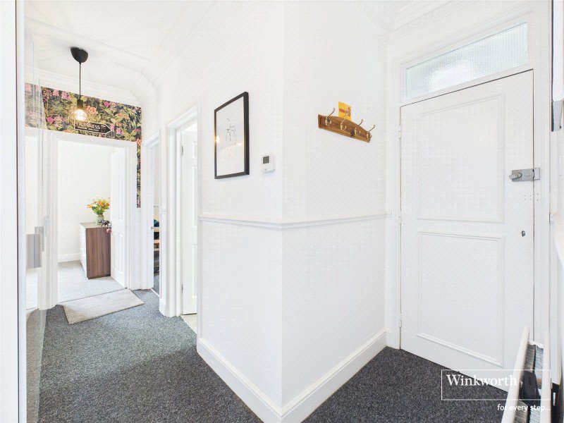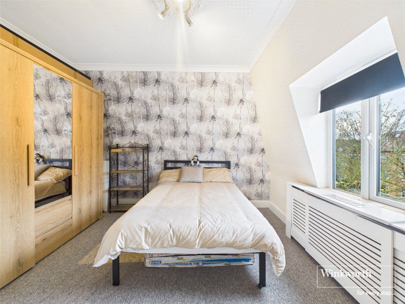 Set within an attractive period conversion in the heart of Hendon, this elegant top-floor flat blends characterful charm with contemporary comfort. The property offers two generous double bedrooms, the principal of which enjoys its own cloakroom and far-reaching scenic views across the London skyline. A spacious lounge exudes warmth and light, while the wide hallway, complete with fitted wardrobes, adds both practicality and style. The bathroom is tastefully appointed, and residents benefit from access to a private section of the beautifully tended rear garden, a rare sanctuary in this sought-after location. In addition, the property includes an allocated parking space at the front of the building.