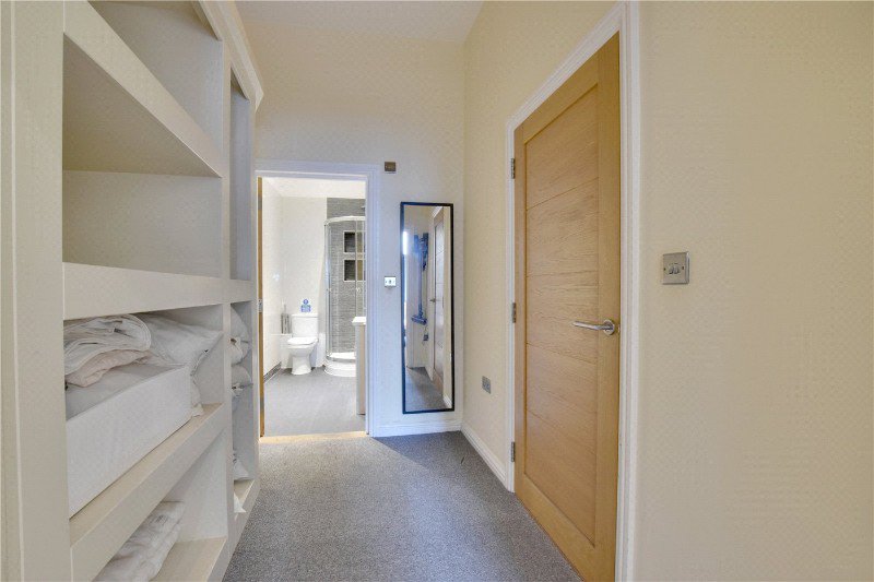 There are two generous double bedrooms, with the principal suite benefiting from a superb 9ft dressing room and a modern en-suite shower room. Additional features include double glazing and gas central heating, ensuring comfort year-round.