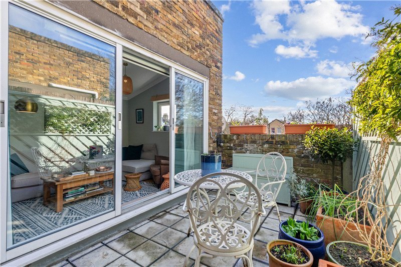 A fantastic three bed maisonette with a west facing private roof terrace. EPC rating C