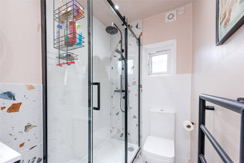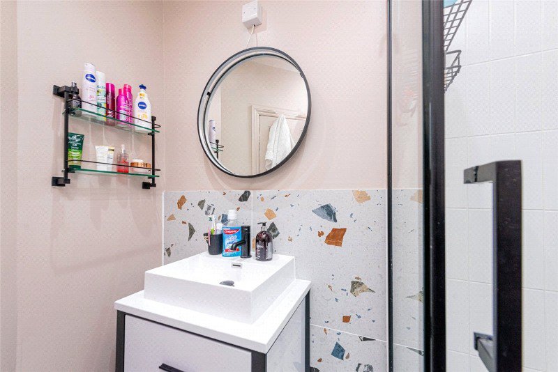 The bathroom is three-piece suite, with high quality fittings, and stunning Terrazzo tiles.