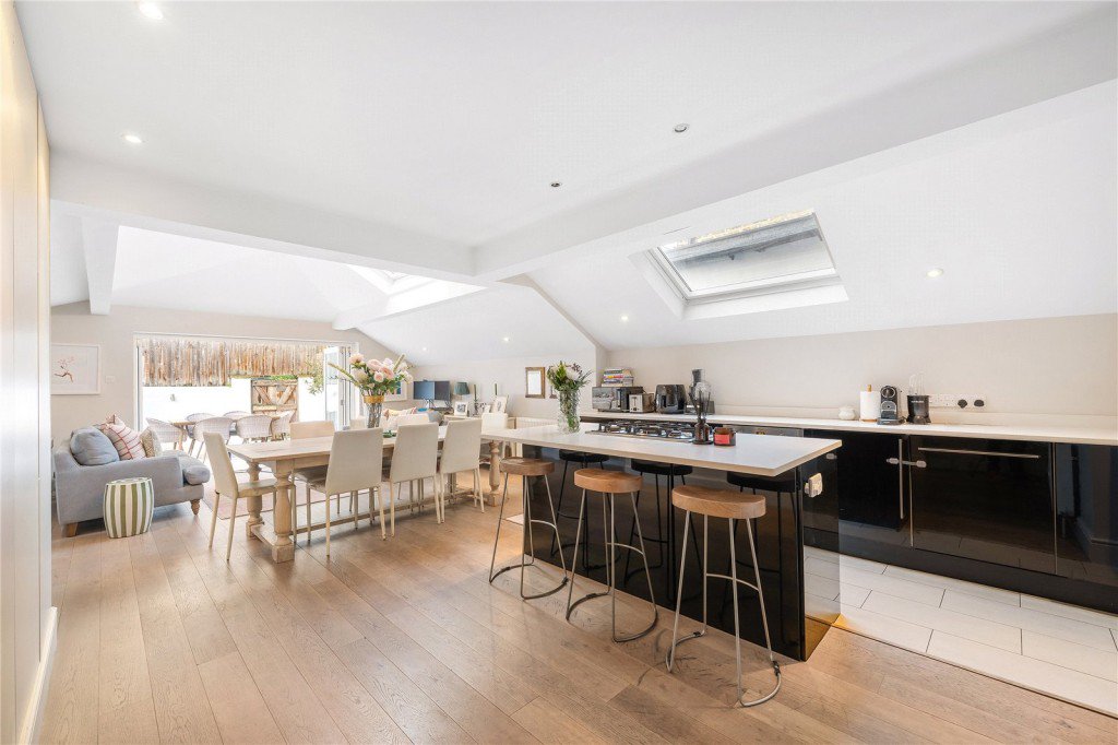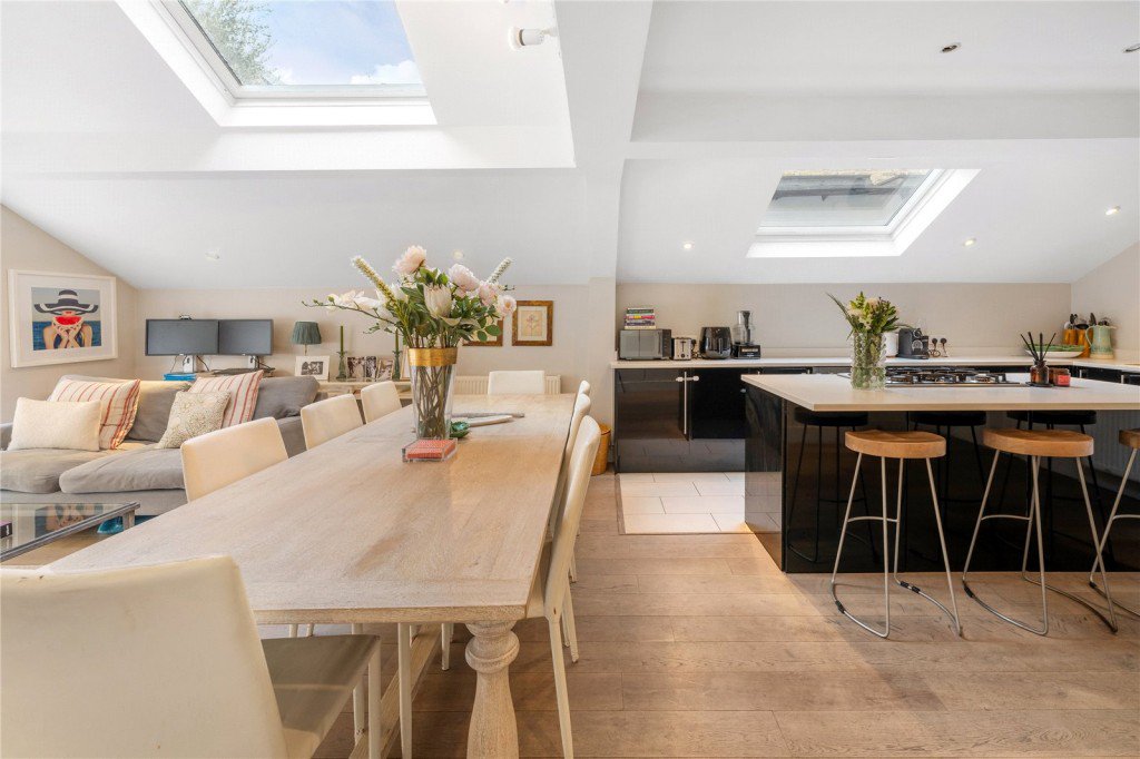 The flat has been fully extended and offers a wonderful sense of space and flow throughout. At the heart of the home is a bright open plan kitchen and reception room, creating an inviting area for both everyday living and entertaining. The kitchen is well designed with ample storage and worktop space, while the reception area opens through to the private garden, allowing for a lovely connection between indoor and outdoor space.