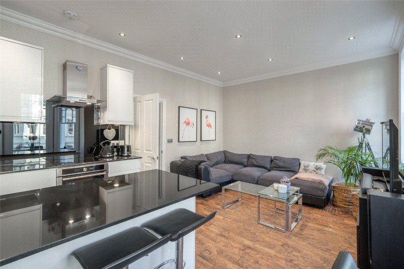 A well-presented two-bedroom first-floor flat set within the ever-popular Gondar Gardens in West Hampstead. This bright and inviting home combines period charm with modern living, featuring high ceilings, double glazing throughout, and a share of the freehold. The heart of the property is the open-plan kitchen/living room, filled with natural light and ideal for both everyday living and entertaining.