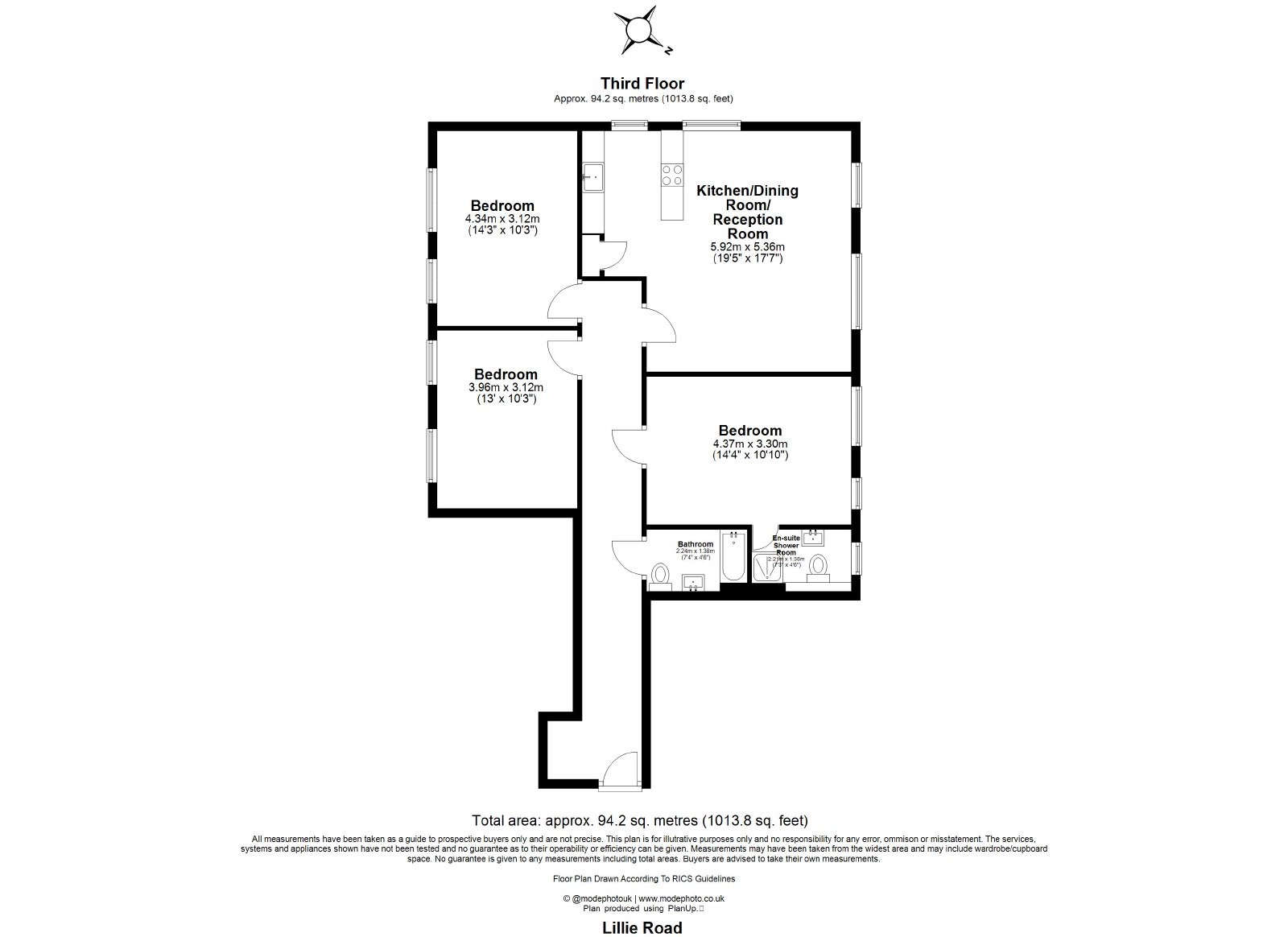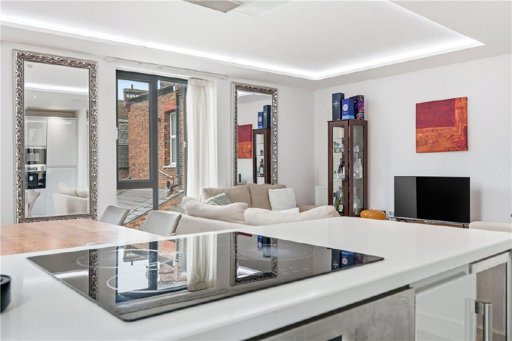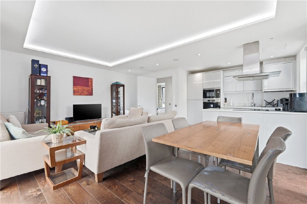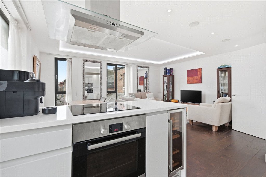 Positioned on the second floor (with lift), at the rear of the building. The property comprises a bright and open-plan kitchen/dining/reception room, three generously sized bedrooms, and two modern bathrooms,