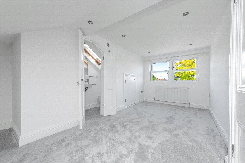 The stairs up to the top floor lead you to the converted loft, which is now the principle bedroom with en-suite shower room. There is also ample eaves storage and separate rear loft accessible on the first floor for additional storage.