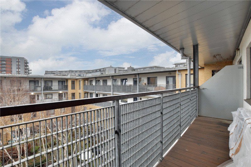 Measuring an impressive 837 sq ft, the property is offered to the market chain-free, in good condition throughout, and benefits from a reserved parking space. The accommodation comprises a generous entrance hallway leading to a well-fitted kitchen and a bright 15ft reception room, which opens directly onto a full-width private balcony ideal for entertaining or relaxing. A separate WC completes this level.