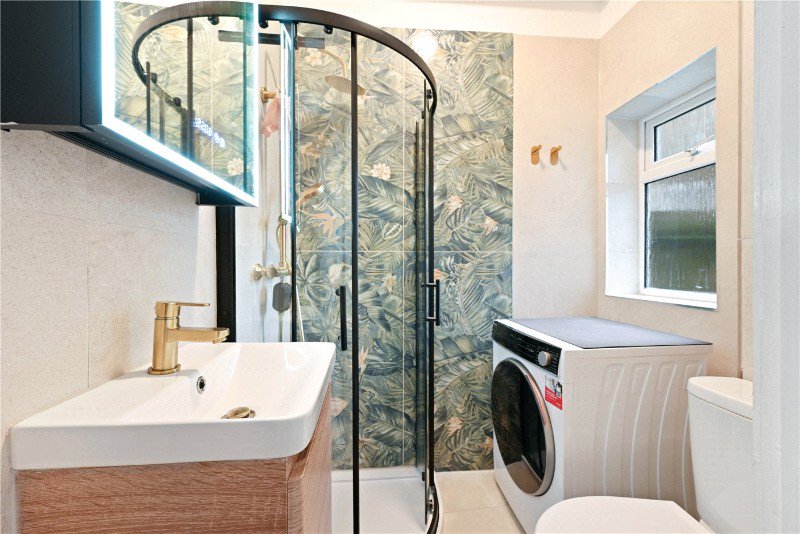 The shower room is located to the middle of the flat, which is a contemporary and fully tiled three piece suite with window for ventilation and natural light.