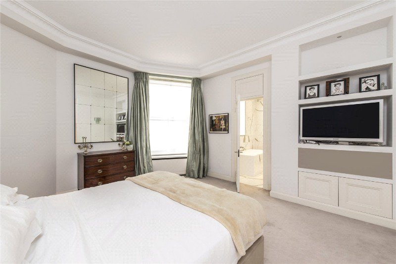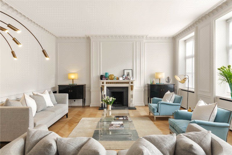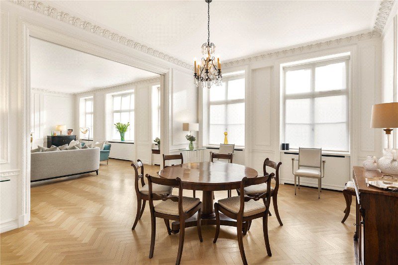 There are two generously sized bedrooms, with the principal bedroom benefitting from an en-suite marble bathroom and his and her walk in dressing areas. The second bedroom is also well proportioned and flexible in use. The apartment is presented in neutral tones throughout and retains a number of original period features, complemented by quality finishes and hardwood flooring.