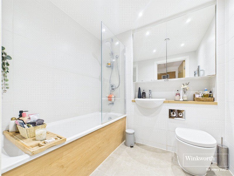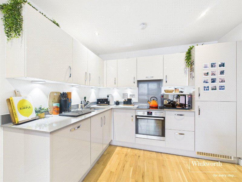 Accessible via lift, the apartment offers stylish and comfortable living accommodation comprising a bright open-plan living space with a high-specification fitted kitchen, perfect for modern living. There are two generous double bedrooms, with the principal bedroom benefiting from built-in wardrobes. The property further features two contemporary bathrooms, including a family bathroom with a bath and a sleek en-suite shower room. A separate laundry cupboard provides space for the washing machine along with additional storage.