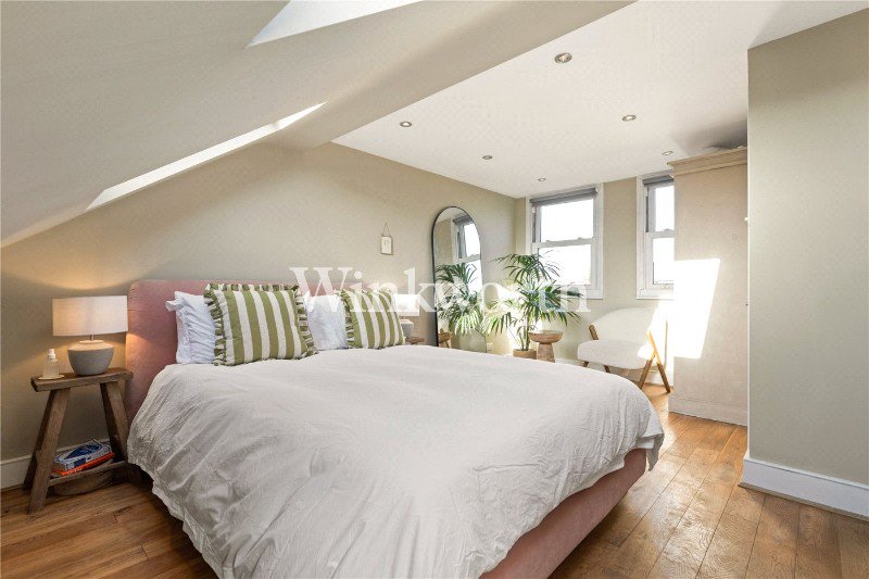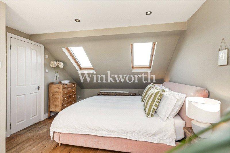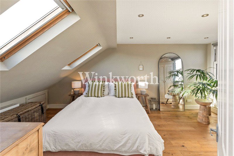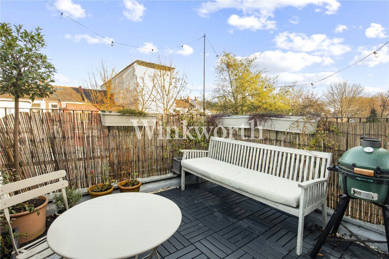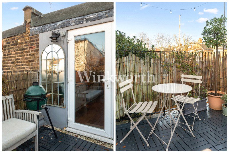 the first floor boats a beautiful reception room with large bay windows overlooking the pretty street below – this room is light and airy due to the south facing aspect and is perfect for both entertaining and relaxing. The first floor continues with access to a double bedroom with high ceilings and smart décor, a luxury bathroom, and a spacious modern kitchen diner with direct access to the showpiece private terrace. This joyful outside space is perfect for morning coffee or a lazy brunch - it’s a peaceful setting and ideal for entertaining and chilling out in the warm summer months. The apartment is concluded by way an impressive loft conversion incorporating a lovely double bedroom with built-in storage and access to a smart en-suite shower room.