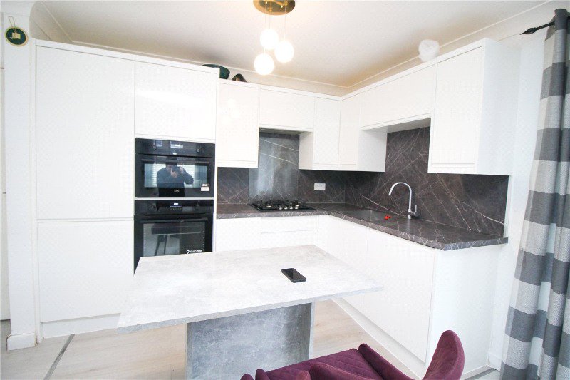 Kitchen/Lounge area: -16’1 x 13’1 (4.91m x 4.00m). Double glazed window to side and patio door to front leading to balcony.