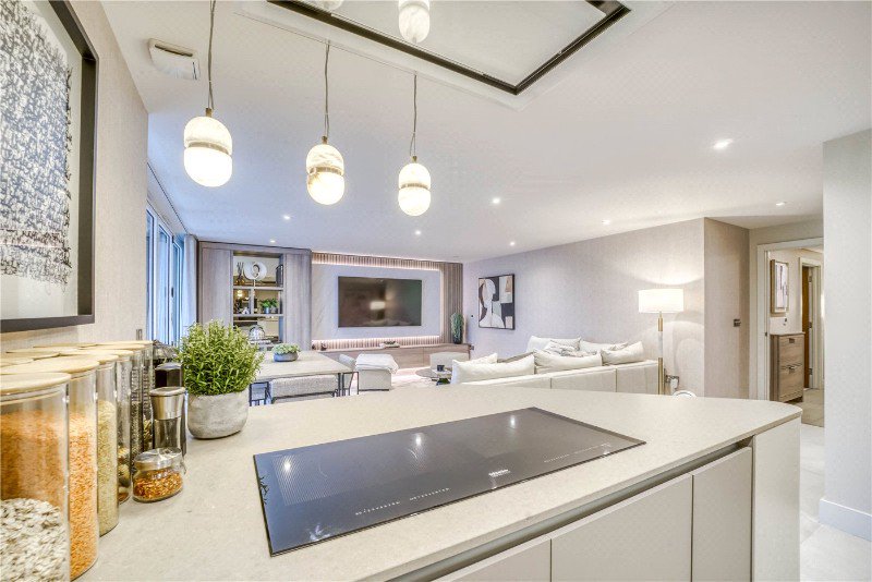 This generously proportioned first-floor apartment extends to approximately 1,315 sq ft of well planned accommodation and is complemented by a large balcony enjoying a pleasant outlook. The property has been finished to a high standard throughout. Features include underfloor central heating, stylish fitted wardrobes and a sleek modern kitchen with stone work surfaces and a comprehensive range of integrated Miele appliances. Further benefits include secure underground parking for two vehicles and a private lockable storage unit. this property showcases a refined home that combines space, comfort and quality within one of the area’s most desirable developments.