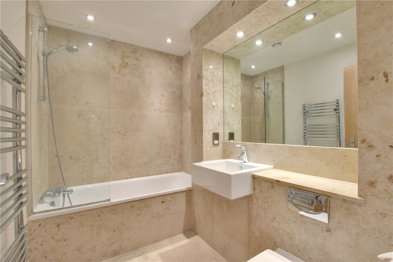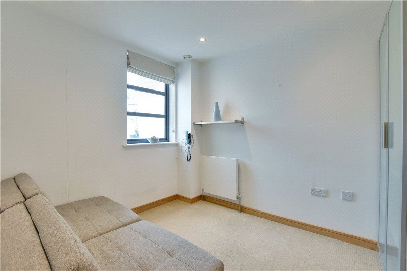 There are two bedrooms, including a larger master bedroom with fitted wardrobes and a second bedroom that works equally well as a guest room, child’s room or home office. A contemporary, fully tiled bathroom completes the accommodation, finished in a clean, modern style with a shower over bath and smart fittings throughout.