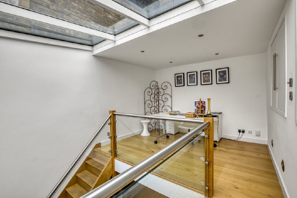 A truly unique highlight is the versatile mezzanine level, complete with a front-facing terrace overlooking Liverpool Road. This flexible space lends itself perfectly to use as a studio, home office, or an occasional guest bedroom, adding to the property’s individuality and practicality.