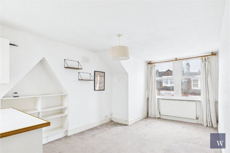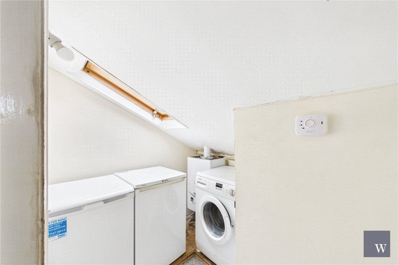 A modern bathroom sits off the landing and features a shower over the bath, and the flat further benefits from useful built-in storage, including storage on the landing.