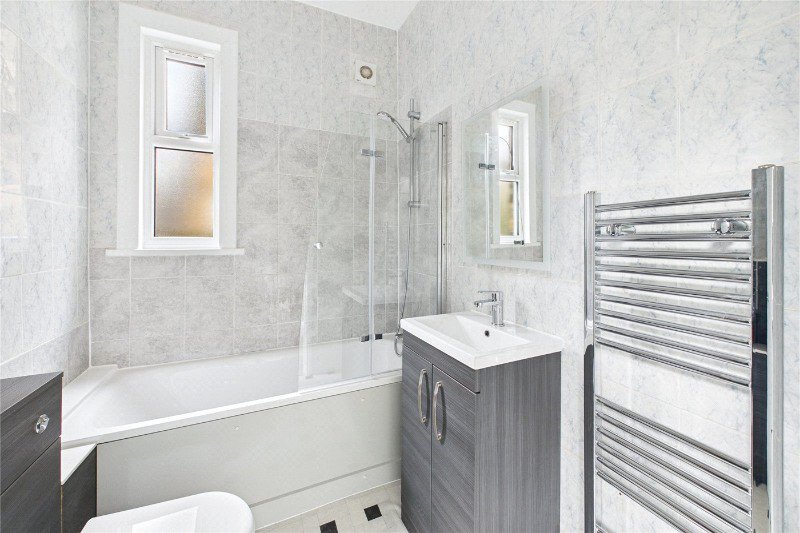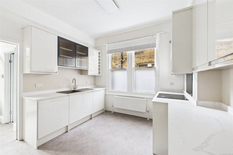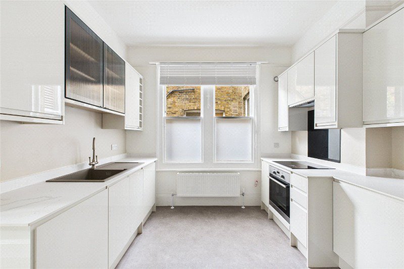 The bedroom is quietly positioned away from the street and offers comfortable proportions with space for wardrobes and additional furniture. The flat has been refurbished throughout, giving it a fresh, turnkey feel while retaining the character expected of a period property.