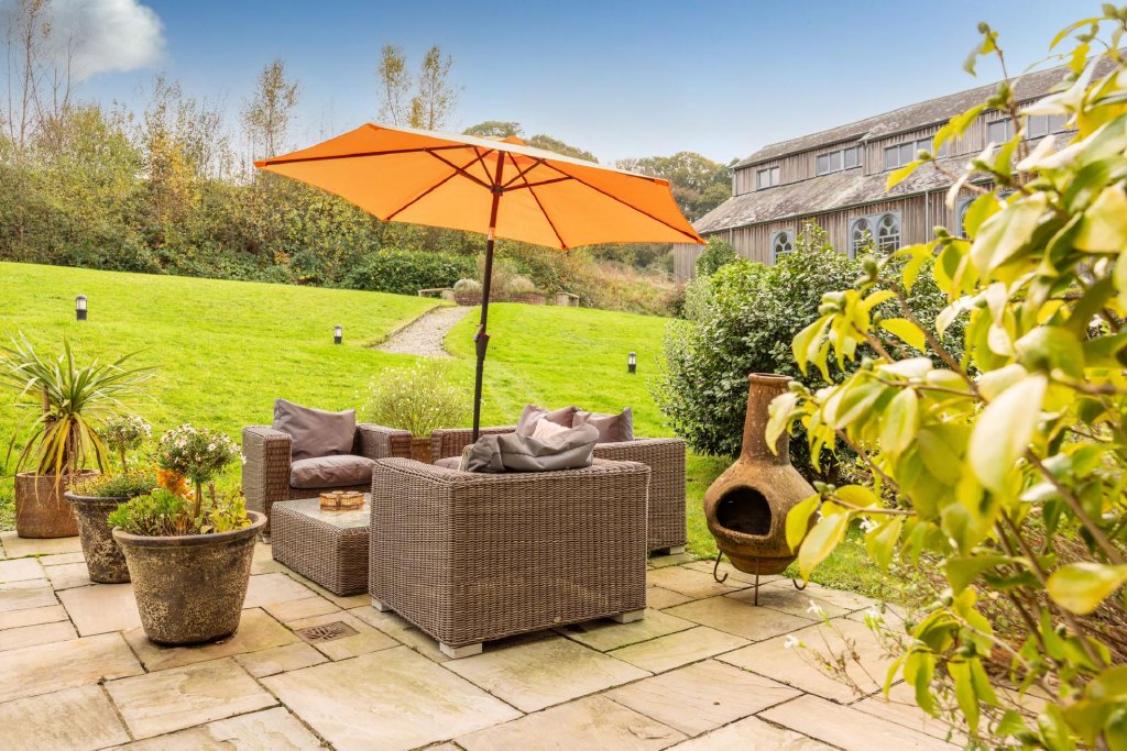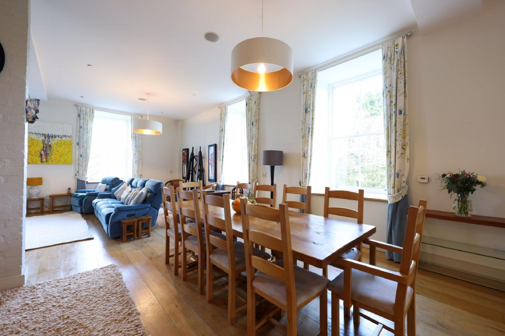 The close-knit private gardens boast beautifully illuminated pathways that guide you around the property, while a charming country path winds down through the serene grounds to the river below.