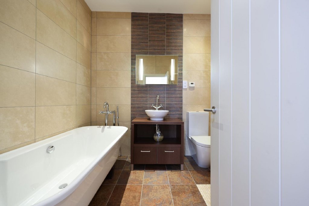 Centrally positioned are two charming smaller double bedrooms featuring fitted wardrobes, and complimented by a shared family bathroom equipped with a freestanding bath, a heated towel rail, a basin, and a loo, all complemented by a walk-in shower cubicle with an indulgent rainfall shower head.