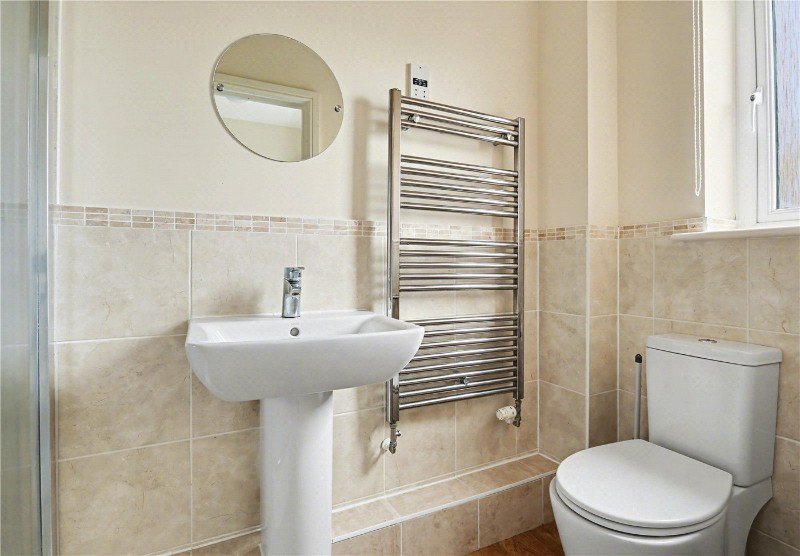 The main bedroom serves as a peaceful retreat, complete with a built-in wardrobe and private en-suite shower room. A second well-proportioned bedroom offers excellent flexibility, equally suited as a comfortable guest room, nursery or dedicated home office. A smartly presented bathroom with bath and overhead shower completes the sleeping accommodation.