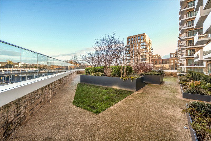 The accommodation comprises; a large entrance hall with storage and utility cupboards, a large and bright reception room with open plan kitchen and a large private corner terrace. The terrace offers superb views over southeast London as well as views towards Blackheath, Canary Wharf and The City. There is a master bedroom with built in wardrobes, second bedroom and a very attractive modern bathroom. Further benefits are a 24 hour concierge, communal gardens and gymnasium.