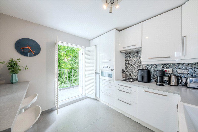 Positioned on the second floor, this charming flat is well proportioned and filled with natural light, featuring a spacious reception room that flows through to a large kitchen with French doors opening onto a flat roof. There are two good sized bedrooms and a bathroom. The property has the right to apply for access to Leinster Square Communal Gardens directly opposite.