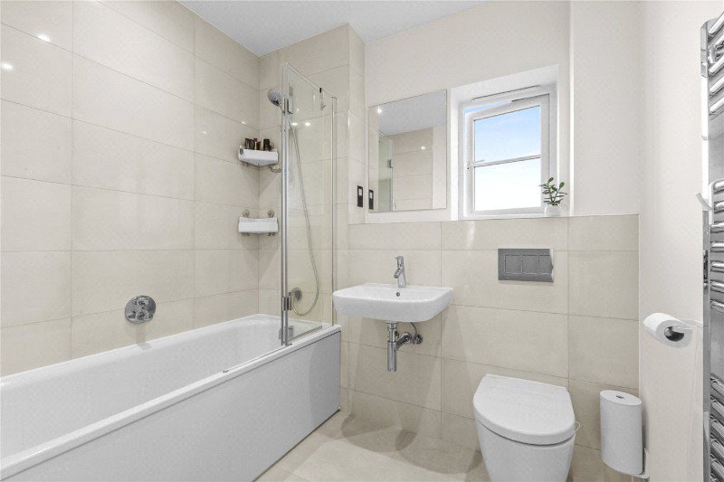 Both bedrooms are well proportioned, with the principal bedroom benefitting from an en-suite shower room. The contemporary bathroom is finished to a high standard, completing the apartment’s well-designed and practical layout.