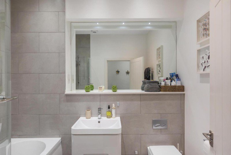 The bright and airy interior seamlessly blends period charm with modern comfort, featuring high ceilings, a spacious double bedroom, elegant window shutters in the reception room and a large storage cupboard for practicality.