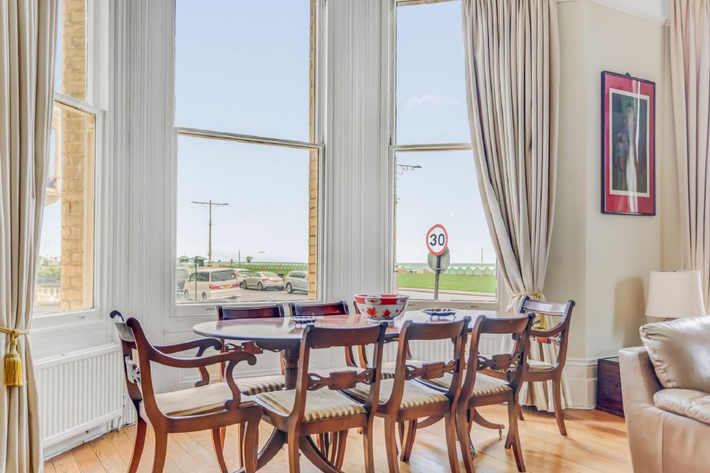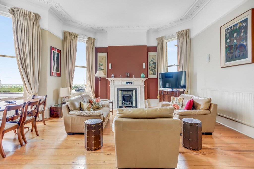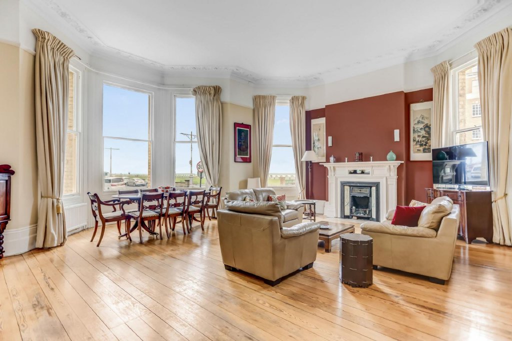 Fashioned in distinctive yellow brick, this charming Victorian converted ground floor spanning 1,377 sq ft apartment enjoys incredible dual-aspect living space with sea views and all the refined elegance Hove’s seafront has to offer. Large south and east facing bay windows flood this well-presented home with light.