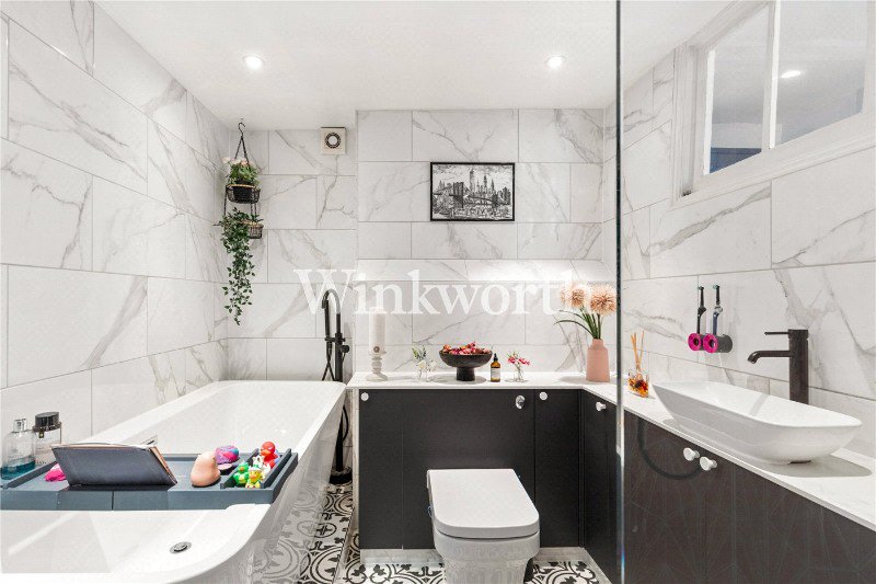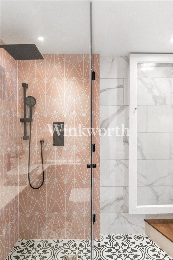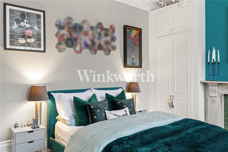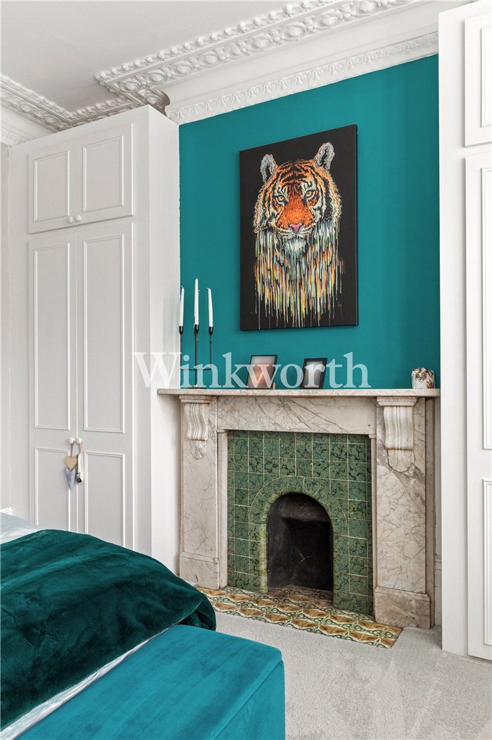 A truly sensational, one double bedroom conversion set across the ground floor of this very handsome, semi-detached Victorian house in N4. Standing at a very impressive 681 sqft, the property has retained a vast amount of original features, from ornate cornicing, ceiling rosettes and working fireplace with marbled lintel. Accommodation comprises of a gorgeous living room, with wooden flooring and cleverly designed shelving, opening out into a private, south-west facing private garden ready to be enjoyed all year round. The kitchen, with tasteful House of Hackney wallpapered pillars, offers plentiful cupboard and worktop space, again with access out to the private garden. The bedroom is the real star of the show. Formally the living room from when the building was a whole house, it stands at 241 sqft alone. Shutters in the bay window, coupled with built-in wardrobes and another fireplace make it the perfect space to wind down after a long day. The property is completed with a beautiful, fully tiled bathroom, benefitting from a large walk-in shower with floor to ceiling glass and a sizeable separate bath tub.
