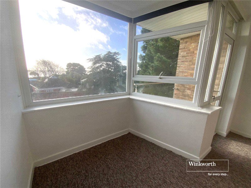 Open plan kitchen / living area with bay window and door to small sun balcony with stunning views over Christchurch Harbour towards Hengistbury Head.