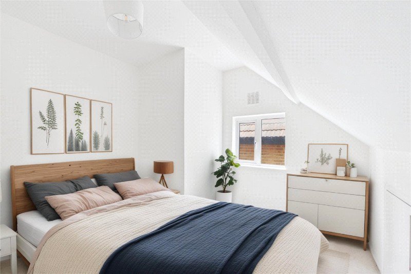 The flat is entered via the communal hall and stairs, with an internal staircase linking the levels. The lower floor provides a well-proportioned reception room, ideal as a dedicated lounge, movie room or work-from-home set-up. Upstairs, the accommodation is arranged around a central hall, with three bedrooms offering flexibility for families, sharers or those wanting guest space. A separate kitchen sits alongside the main hallway, while the bathroom is positioned centrally for easy access. There is also useful eaves storage, adding practicality without compromising the room sizes.
