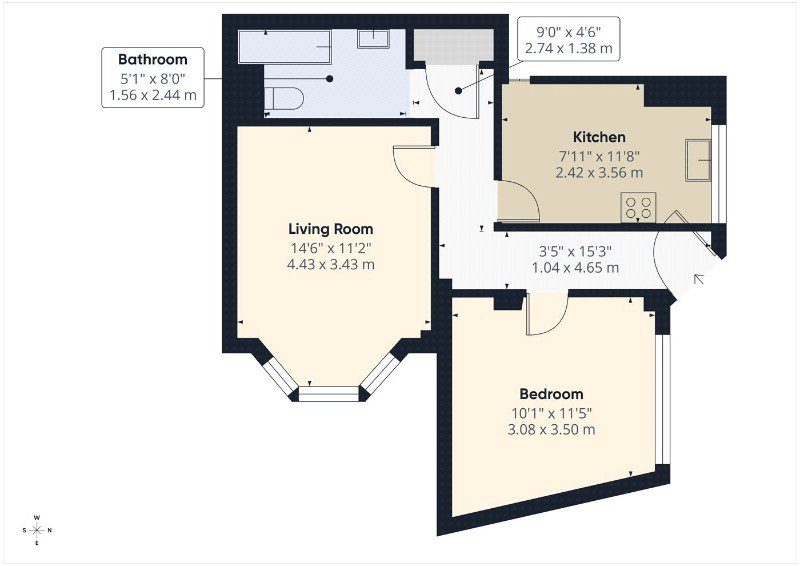 The accommodation comprises a living room to the front aspect, a separate kitchen area, one bedroom, and a bathroom. The layout provides a solid foundation for improvement, with scope to reconfigure and update to suit individual tastes and requirements (subject to any necessary consents).