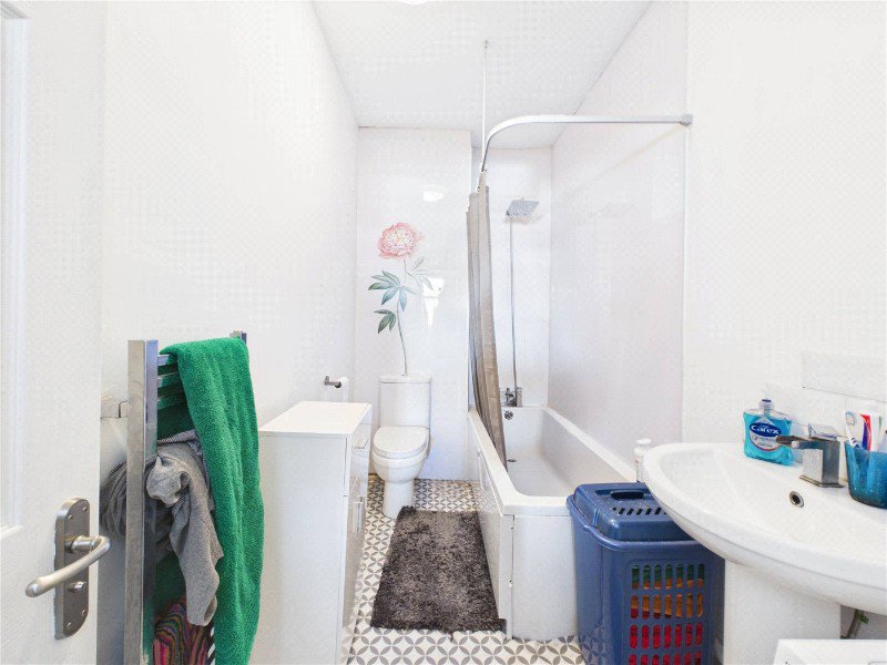 The bathroom is fitted with a modern suite, offering a clean and functional space comprising bath/shower, wash hand basin, and WC.