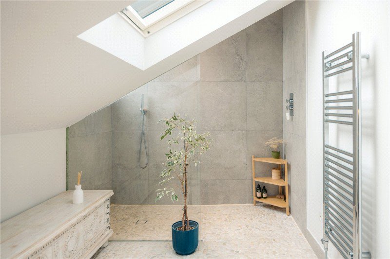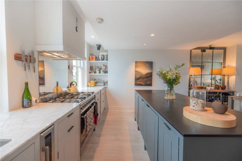 There are two generous double bedrooms and two stylish bathrooms. The principal suite occupies the top floor and offers excellent storage along with a contemporary en suite shower room with elevated views. The main bathroom features underfloor heating and high quality finishes.