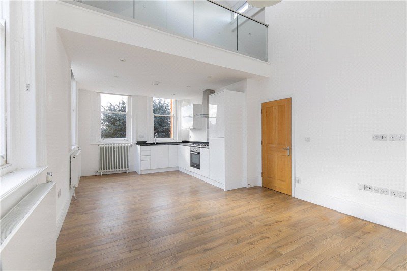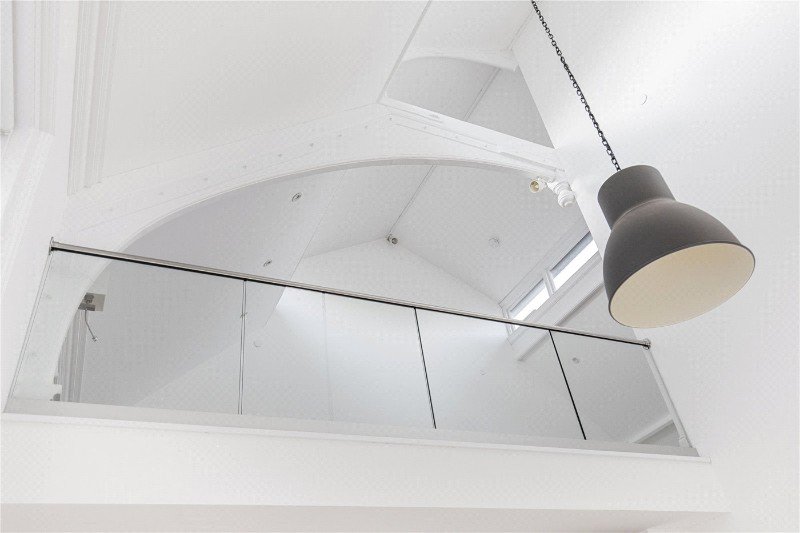 The showstopping heart of the home is the openplan kitchen and lounge, featuring doubleheight ceilings and large, dual-aspect windows that fill the space with natural light. Overlooking this principal reception area is a striking mezzanine floor with glass balustrades and beautifully curved ceilings.