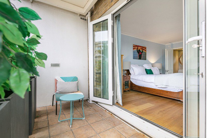 The unparalleled first floor apartment boasts two terraces, affording unspoilt and spectacular views over the River Thames. The reception hall leads to both the spacious open planned reception and the well-planned kitchen/dining room. The reception room boasts an immensely bright, well-designed entertainment space, carefully curated through sizable custom fitted windows and doors leading to two terraces. The custom-built kitchen has been carefully designed and exudes various design aspects inspired directly from the river.