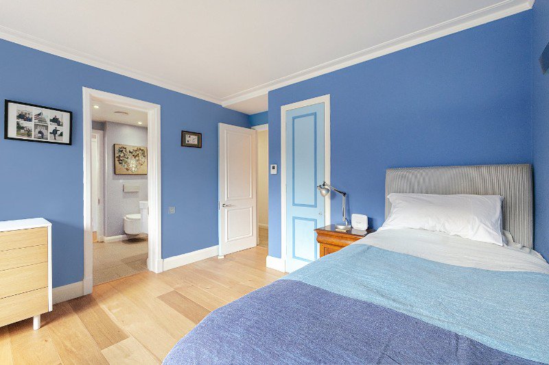The property affords a generous master bedroom boasting wonderful river views and direct access to a private terrace, complemented with a luxury ensuite bathroom and dressing room. The property affords a further two spacious double bedrooms, separate WC, utility room and a well-appointed luxury family bathroom.