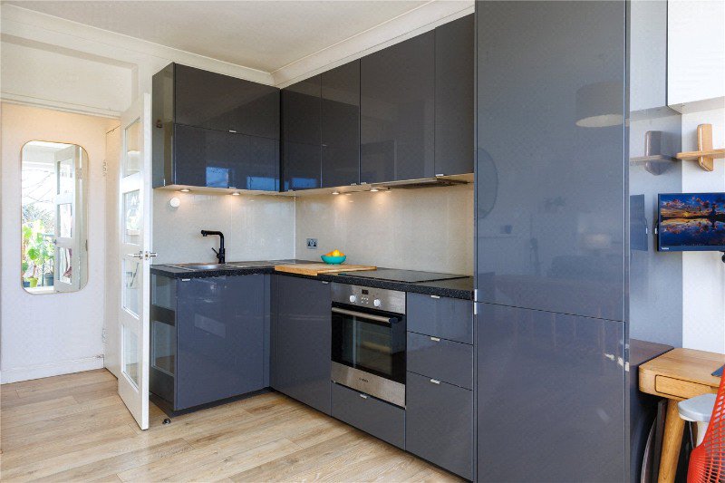 The heart of the home is a bright and spacious open plan kitchen and reception room with direct access to a private balcony. The contemporary kitchen offers ample storage and complements the living space perfectly.
