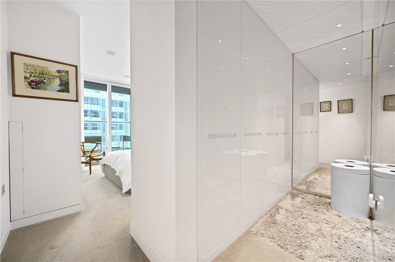 Situated on the 15th floor and enjoying the sought-after south-west facing aspect, widely regarded as one of the finest positions in the building, the apartment benefits from superb afternoon and evening light. Dual-aspect, floor-to-ceiling windows frame impressive views across the London skyline and allow natural light to flood the space throughout the day.
