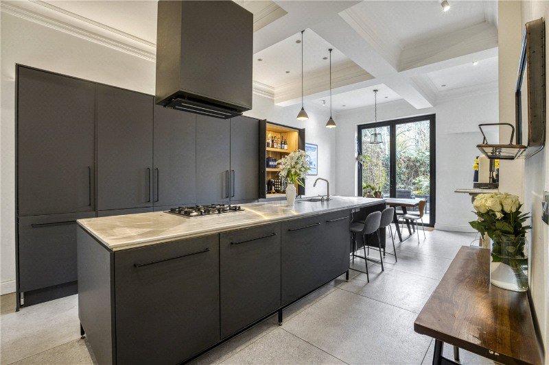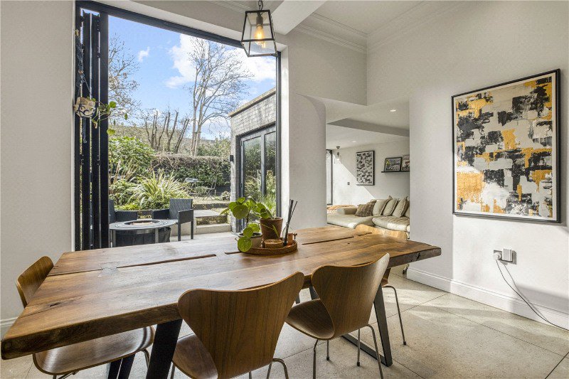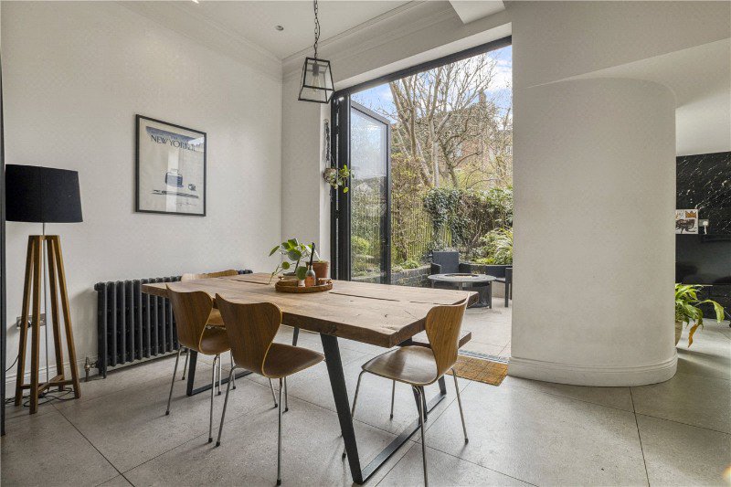 An impressive two-bedroom ground floor conversion over 1,200 sq ft of beautifully arranged living space. A particularly rare highlight is the layout, with the kitchen, dining and reception spaces all opening directly onto the private, secluded garden. This unique design creates a seamless indoor-outdoor feel, offering a tranquil oasis in the heart of London. Presented in immaculate condition throughout, the home features high-quality fixtures and refined finishes that enhance its overall sense of style and comfort.