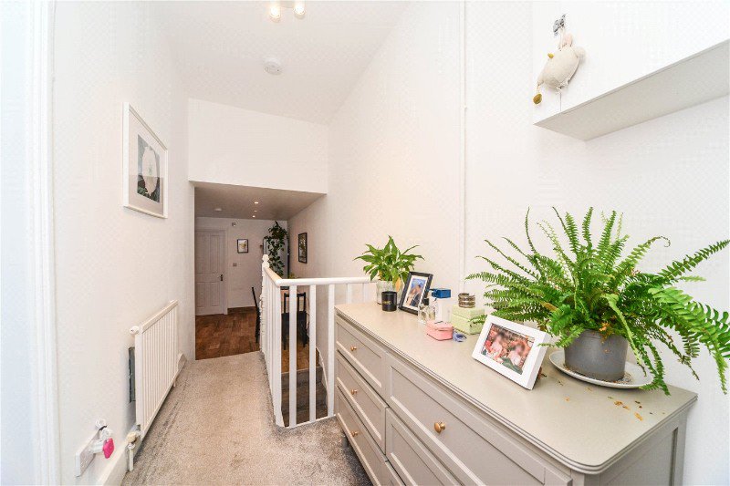 The well-appointed kitchen provides ample space for a dining area and leads through to a large bathroom. The flat was fully renovated in 2023, including the installation of a brand-new Shaker-style kitchen and a modern family style bathroom.