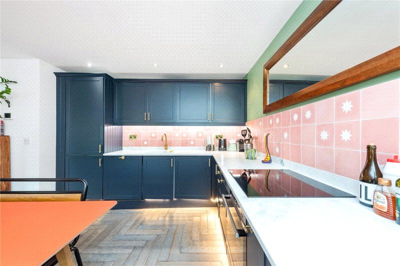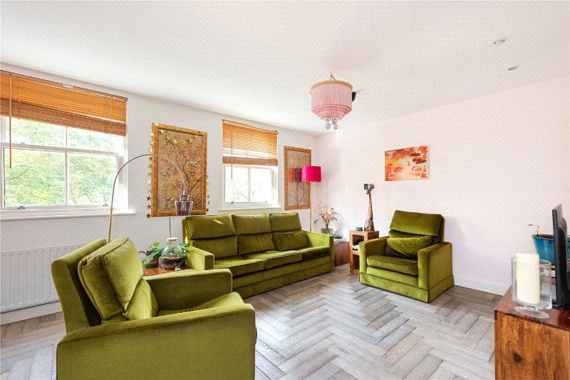 A beautifully refurbished and well-proportioned two double bedroom, two bathroom apartment set within an attractive Neo-Georgian building. The property features two well-proportioned double bedrooms, including a good-sized principal bedroom with a modern en-suite shower room, along with a contemporary family bathroom complete with bath. The impressive open-plan kitchen has been thoughtfully designed with carefully considered finishes and quality components, flowing seamlessly into a quirky and characterful living area. Herringbone flooring and impeccable attention to detail run throughout, creating a stylish and inviting living space, while the apartment also enjoys pleasant views overlooking Clapton Square.